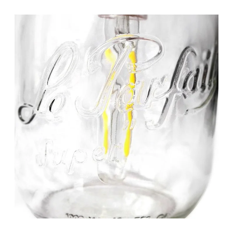 Lampe bocal réalisée avec le fameux bocal français 'Le Parfait' de 750ml en verre.